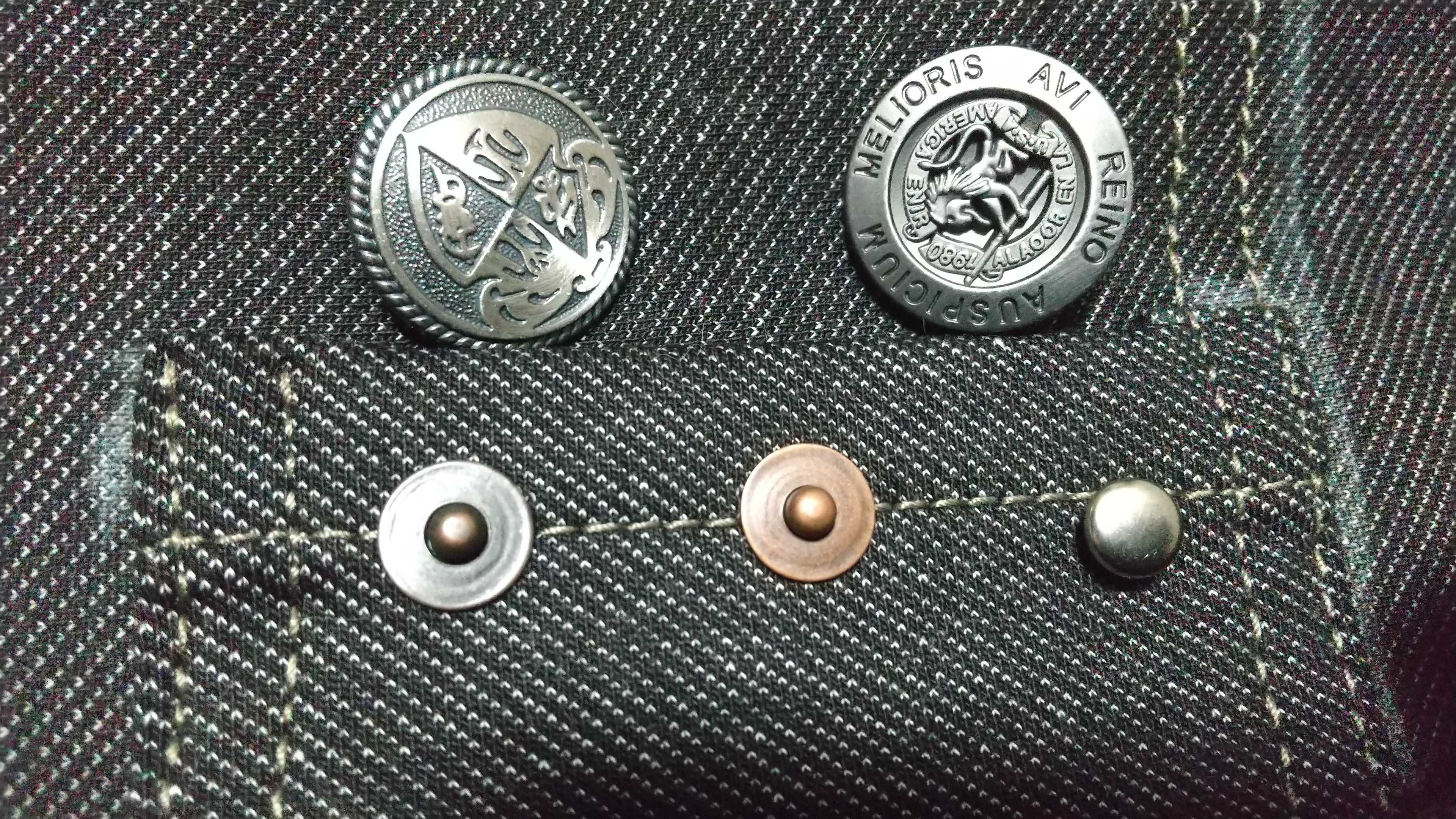 (上2つがボタン、左下の2つがリベット、右下がカシメ)ボタン(写真の上2つ)は、日暮里の熊谷商事で購入しました。打ち付けるタイプではなく、縫い付けるボタンです。厳密にはジーパン用でないと思いますが、それっぽいものを買ってきました。大きさは、20ミリくらいでちょっと大きめ。価格は左が360円、右が196円でした。リベット(写真の左下2つ)は、AmazonのCITRON JEANSというお店で購入しました。足の長さは8㎜。14オンスデニム2~4枚止められるそうです。4~7枚止める場合は、9㎜を使うと良いそうです。色は、左下がアシッド、下の真ん中がアンティーク。各12セット、打ち具付きで1490円でした。実は、最初、近所の大きな手芸店や楽天市場では、リベットが全然見つからず、結局諦めて、両面カシメ(中タイプ)を用意していました(写真の右下)。その後、Amazonで検索したらあったんですよね。実物を見たら、リベットって、カシメと全然違ったので、買えてよかった。ジーパンらしいものが作れそうです。CITRON JEANSというお店では、ホームページでジーンズ部品が売られていて、Amazonよりも種類が豊富みたいなので、リピートするときには、ホームページから購入するかもです。