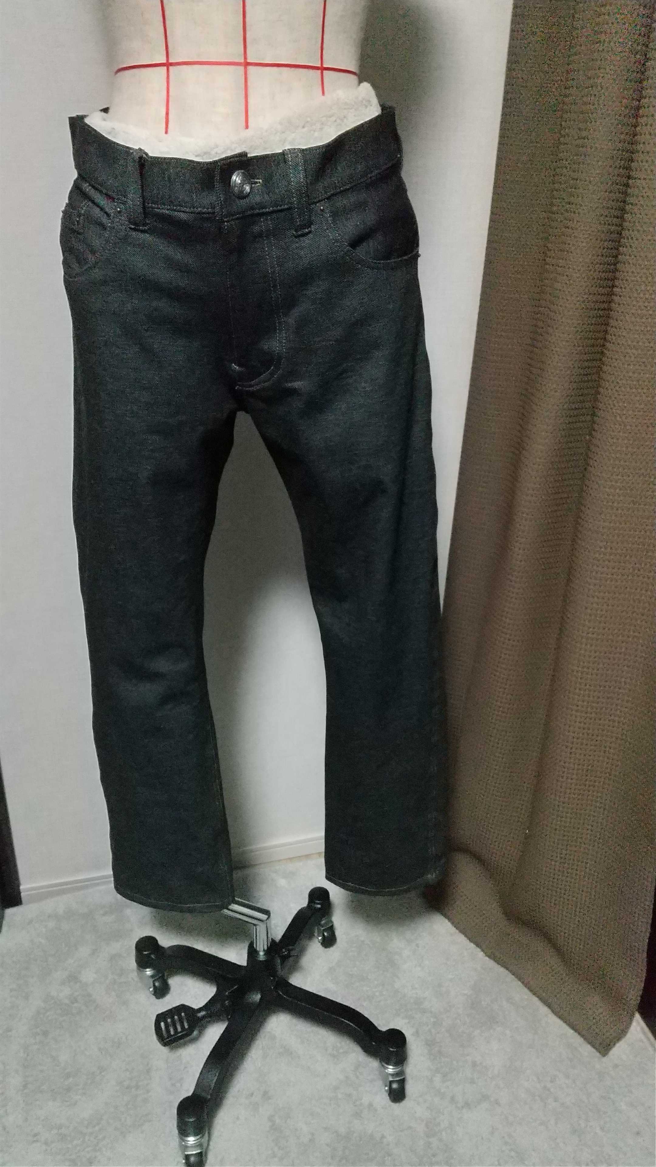 ジーパンがようやく完成しました。トルソーに着てもらいましたが、サイズがブカブカで、タオルを詰めてみましたが、シワシワに写ってしまいました。アップにした写真も載せたかったのですが、なぜかエラーになるので、後日、再挑戦しようと思います。リベットや革パッチも付けたので、ジーパンらしく出来上がりました。ストレッチ素材で動きやすいです。型紙は、「本格的メンズ服」を参考にしました。パタンナー金子俊雄の本格メンズ服 [ 金子俊雄 ]アレンジは、何もしていなくて、革パッチを付けただけです。材料は、🔷生地:ストレッチデニム、チャコールグレー、縦横伸縮:ダブル幅約1.3m使用:日暮里のNAGATOさんで購入、1mあたり1200円🔷糸:シャッペスパンの厚地用30番、色134番:1個でギリギリ足りなくて、2個目を少し使いました。:1個あたり368円🔷ファスナー:YKKワイジップ、シルバー18cm、13cmに調整:新宿オカダヤ楽天市場で購入、200円🔷ボタン:日暮里の熊谷商事で購入。360円🔷リベット:リベットだけなら 1組あたり約20円:6組使用🔷スレキ、接着芯🔷革パッチ:楽天内のレザーマートで購入したレザークラフト工具セットに付いていた、タンローというなめし革(厚さ1㎜)8×6.5cm、ハンコ、シャチハタのタートという不滅インキの赤合計2608円+αおそらく3000円前後になると思います。結構、費用がかかりました。それに加えて、道具も新しく揃えたので、大きな出費となりました。🔷ハンドプレス機:リベット止め用:29502円🔷ニッパー:ファスナー調整用:1145円🔷ハンコ:革パッチ用:2個で1375円🔷不滅インキ:革パッチ用:1925円合計:33947円