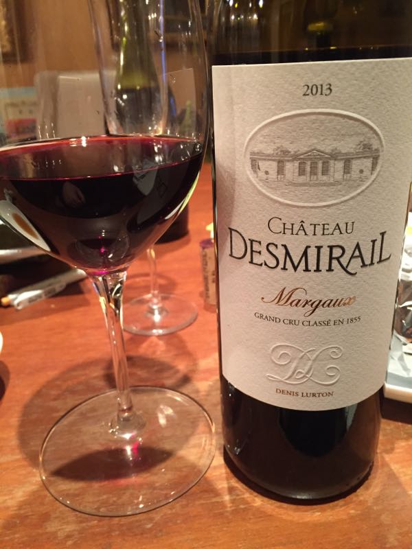 シャトー・デスミライユ が作るAOC MARGAUX とのこと。 株式会社センチュリートレーディングカンパニーの輸入。 色は濃い目だが、アタックがとても静かでタンニンも酸味も普通以下である。ボディも厚みは無い。しかし、南米や南アフリカやオーストラリアには決して無い精緻なバランスがある。 余韻も長い。マルゴーってこういうことかと分かるワイン。 d4 16
