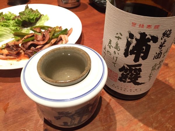 浦霞 は日本酒ファンならば誰でも知っている銘柄。仙台からほど近い塩釜にある株式会社佐浦Y という会社が造っている。佐浦Y の何故Yがあるのか?意味は全くわからない。 この酒はぬる燗にあうから、お湯でお猪口を温めて飲む写真の様なスタイルで。 ほんと美味しい。4合瓶 1200円