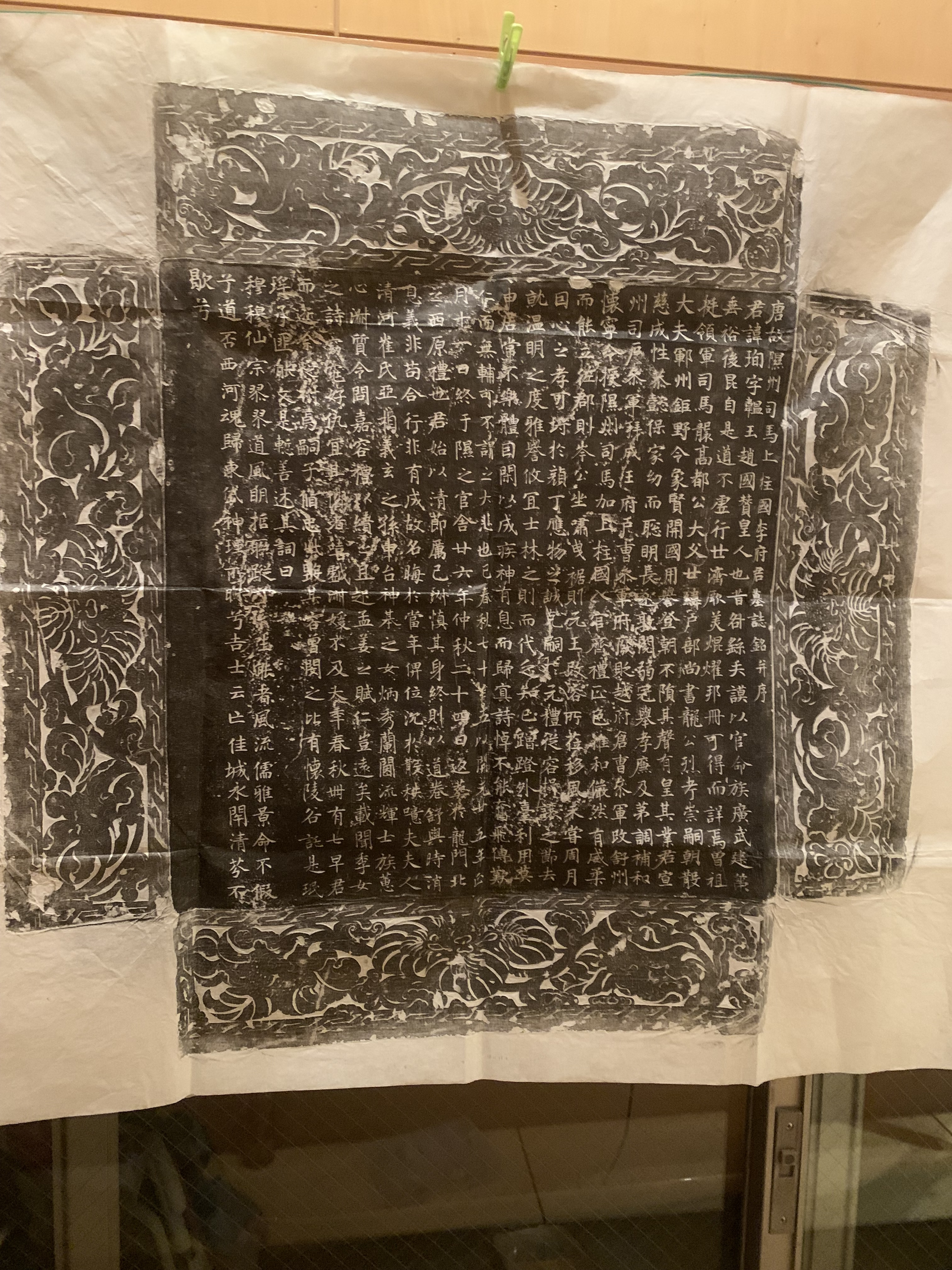 石の側面に模様の飾りがあるのが普通だけど、文字が書かれている墓誌銘の碑面の縁フチ、つまり辺縁・周囲に唐草模様?の飾りがあるのは、墓誌銘としては珍しいのではないか。側面も蓋も拓本が無いので全体像はよくわからない。この縁の紋様のため、どことなく、可愛らしい印象を与えている。大きくないから、それほど高位な軍人では無かっただろうと思われるが、文字はしっかりしている。この先ゆっくり解読して行く。。