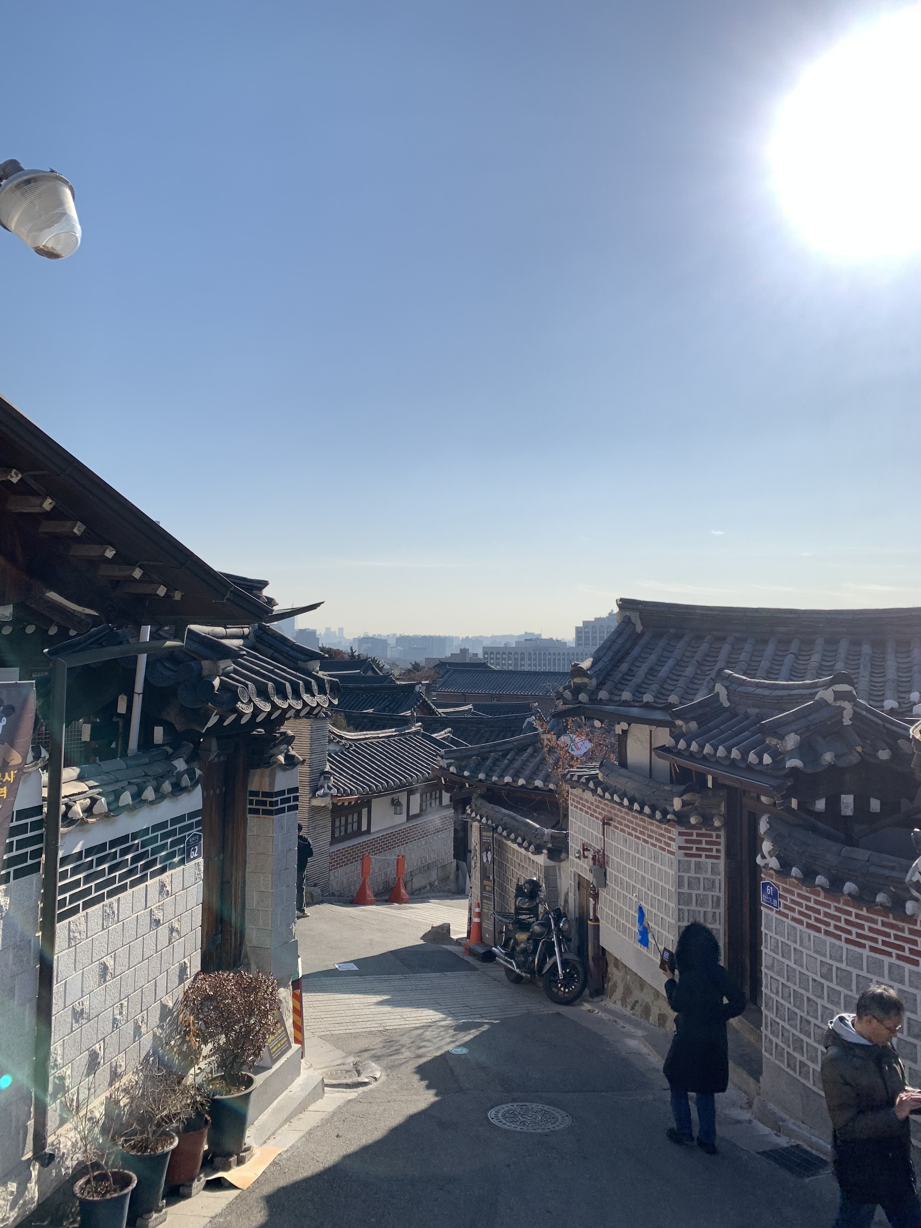 北村韓屋村 という所。初めて来た。景福宮の東側の、南向きに斜面になっている一帯に、昔貴族階級だった 両班 ヤンバン と呼ばれる貴族・官僚が住んでいた地区。両班の屋敷とか街並みが復元されて保護されている。(そんなに面白くないです)(どうせ復元だから倉敷とかと同じ) 北村韓屋村の街並みの頂上辺りを西に行くとだんだん丘を下る感じに進み、この標識から階段を降りていくと三清洞サムチョンドン という地区に行ける。目指すスジェビ専門店は、景福宮(キョンボックン)から少し仁王山(インワンサン)の方に上がったところに位置している。サムチョンドン(三清洞)スジェビ。というスジェビ(すいとん)の専門店。これでスジェビ2人前。妻はこの店2度目だという。ジャガイモのチヂミ。(カムジャ)こうしてアップで見るとやや不気味かもしれないが、ここのスジェビは世界一美味しい料理だと断言する!仁寺洞スジェビ、もスーパー美味だと思ったが、仁寺洞を超えたっ!。3人でこれで満腹で胃がはち切れそう。ネコラン三つ星認定っ!!元来こういうワンタンとか刀削麺とかブヨブヨした粉食が好きというのもあるが、このアサリと鰹出汁の効きまくったスープとすいとんの歯応えが絶妙なマリアージュで最高っ!! ずっとここでスジェビを啜っていたいっ!!(実はこの店はミシュランのビブグルマンを何年も連続してとっているらしい! ビブグルマンとは星を取るような高級店ではないが、価格以上の満足が得られる店という意味らしい。東京でも110軒認定されている)後ろ髪引かれながらの退店。店の前に北側からタクシーが走ってくるからタクシーでアングク(安国)駅の近く、仁寺洞まで5000ウォンで行く。仁寺洞(インサドン)の東側に隣接する益善洞(イクソンドン)は、1920年ごろに形成されたソウルで最も古いとされる韓屋村(ハノンマウル)で、約韓国伝統家屋が密集しメイン通りには築100年もの韓屋を改造した個性派ショップ・飲食店、ゲストハウスが並んでいる。ショッピングや韓国グルメの店が多く日本で言えば浅草と代官山の中間みたいな感じ??オッサン向きではない。。^_^^_^^_^^_^^_^^_^^_^^_^^_^^_^^_^以下は北村韓屋村に行ったことのある二男が3日目に単独行動でアックジョン(狎鴎亭)@カンナムの方、に行った二男の日記原文のまま。ブログという死滅寸前のコンテンツを23歳の息子と日本初?の共同制作っ!!〜〜〜〜〜狎鴎亭のbeaker(セレクトショップ)や2枚目の店名わからんおっしゃれなインテリアショップなどで買い物し14時頃ロデオ通りのチュロスやへ。Minute Papillon 清潭店、ミニュートパピヨンイートインの待ちは5組で60分の表記ただ店内にお客様は2組くらいしかいない…すぐ案内できないのだろうか?テイクアウトは0分待ちだったのでテイクアウトでレジにて注文10分も待たずにでてきたチョコレートディップチュロス5本で9500ウォンチュロスのみなら6500ウォンチュロスは美味しい国内某TDL遊園地のチュロスは生地がしっかりしており噛みごたえがあるが、ここのチュロスは中がふわふわで新しいチョコレートソースは口に入れた瞬間はとてもビターで大人な味なのに、噛んでいるととても甘い後味甘すぎて二本で一旦ストップ内装はレトロなバーのような雰囲気、店内や紙袋いたるところにぴんくがしようされておりとてもかわいらしい〜〜〜〜〜〜〜〜〜〜南大門の方の、韓国のスタバともいうべき A TWOSOME PLACE で長男とティラミスを半分ずつ食べた。アイスのバスキン・ロビンスでもココでも注文を受けるのが現金不可能な機械になってて、order here とか書いてある。注文を受けた後に何組待ってるかわからなくて、店内は空いてるのに10個持ち帰り飲み物を注文してる人とかいたから出てくるまで25分かかった。おかげで南大門市場行くの諦めた。韓国は日本よりオートメーションが進んでいるけど、注文はしたけどどれだけ待つのか分からないから結構困ると思う。さらに韓国アパレルブランドLIFEWORK(ライフウォーク)メガストアで服を買い増し。日本でも15年前ぐらいから服とか雑貨店とカフェの合併した店が出来始めたがそれ程広がらなかったと思う。家賃とか人手不足もあると思う。しかしここの地下2階のカフェはアパレルから唐突にカフェエリアとなるし写真の様なサボテン?ビューで街作りとかテナントに興味あれば一見の価値はある。ヤンニョムチキンのGoone Chiken で待ち合わせ。急いでビールとチキン。テラの生ビールは少し薄めなんだよなー。なんとこの店新大久保にも出来たらしい。1930発羽田行きのアシアナ便なので金浦空港へ。来年はアメリカ行きたいなあ〜ラスベガスもいいよな、父さんの金で。と二男が言った。父さんの退職金でさあー!パァーっと行こうよ!パァーっと! と長男が言った。何かこいつらバブリーなんだよな。っていうか来年も両親と旅行一緒に行くのかよ。退職金でっていつまで親と旅行行く気してんのかね。あー子供って何でいつまでも可愛くて赤ちゃんに見えるんだろ。例え