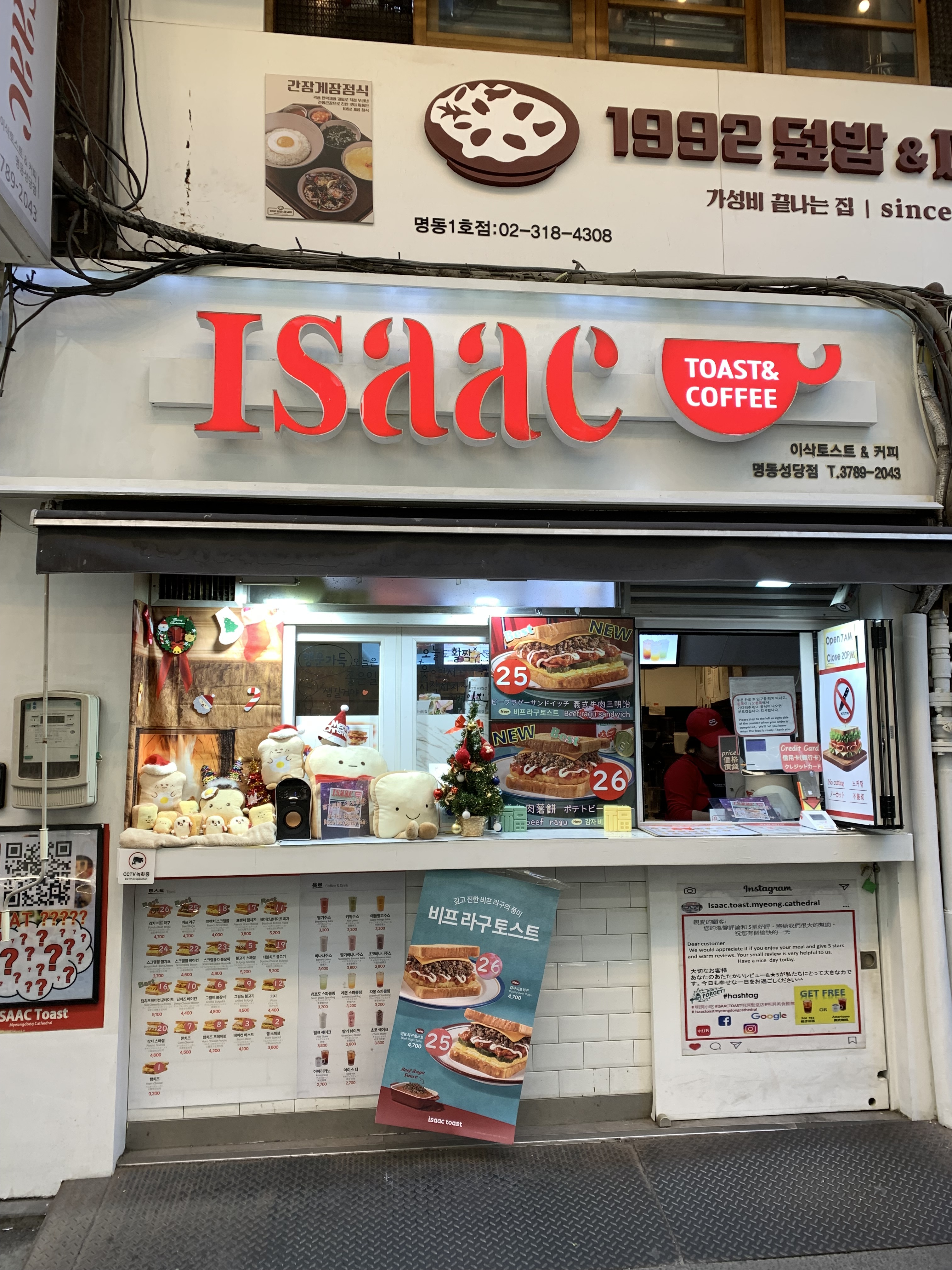 2024.12/31の話し。12/30の夜便で来た。家族4人でソウルに来たのは12年ぶりか?俺は多分7回目?妻は13、二男は今年4回目、長男は11月に来たらしいので今年2回目。ソウル滞在中に朝食に1度は食べたい「イサック」のハムエッグトースト。3600w 完全に大人家族4人で同一行動は難しいのだが、ソンス聖水まで地下鉄で行き、アーダーエラー、パンナム、タンバリンなどで息子たちと買い物。陵洞(ヌンドン)ミナリ(ミナリとはセリのこと)でユッケビビンバ(大量のセリ入り)を食べ、大林倉庫ギャラリーでお茶。アーダーエラーのフィッティングルーム、広っ。 「ヌンドン・ミナリ」という地元店のユッケビビンバ。少し甘めのタレが牛肉とベストマッチで旨味が溶けだしている。セリのコムタンも素晴らしい。 「大林倉庫ギャラリー・カフェ」は是非訪問してほしいお薦め店。こういう店は日本にあるのかな?家賃が高いから東京では絶対耐えられないゆとりの空間に遊びが溢れている。。カンジャン市場に一瞬立ち寄って持ち帰り用蛸のキムチなどを大量購入。 明洞の「お釜の蓋でサムギョプサル・チョンハチェイルソットゥコン」三階にあるお店、で豚肉とビールとマッコリ。 クリスチャンでもないのに聖歌隊の歌を聴く我々。2330時。地下鉄で2つ、東大門デザインセンターで新年カウントダウンと同時に花火が5000発打ち上がる予定で楽しみにしてたが、ムアンの航空機事故で多数の新年イベントは自粛となり、調べたところ一応プロジェクションマッピングは面積を縮小して音量を下げて実施するらしいので行ってみた。推定1万人かそれ以上の人がいた。が、花火が中止になったことを知らない人も沢山いた。 今日の歩数20560歩。かなりくったくた。。