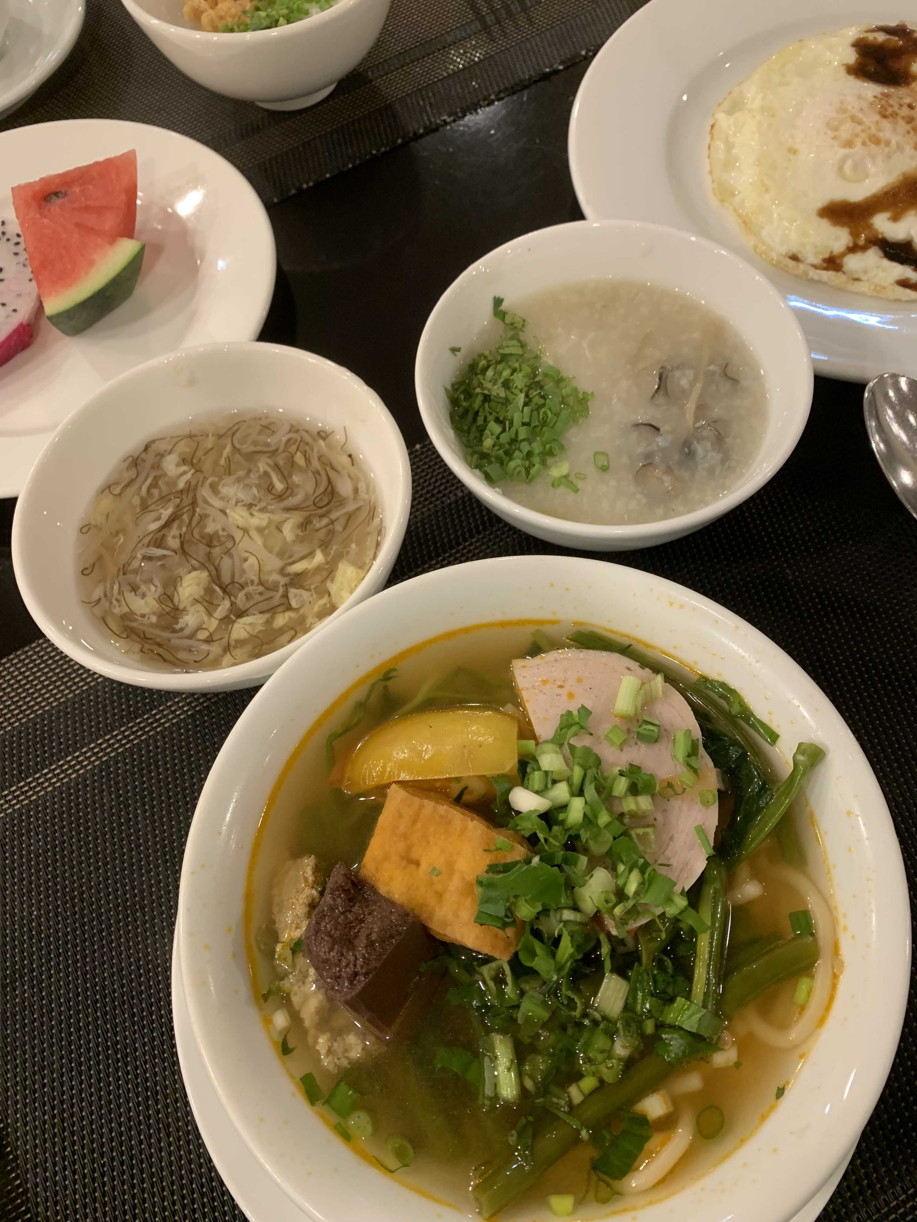 11/9 ホテル朝食のフォーがトマト風味に味変していた。牡蠣のお粥も美味い。ベンタイン市場 暑くて暑くて32度ぐらいある。11月でこれだから、夏に来てはいけない国だと思う。 何といえば良いか、観光客向けのお土産屋も無限にあるし、地元の人向けの生鮮品とかアパレルの店も沢山ある。冷房なしサトウキビの生搾りジュース 20000ドン 115円ぐらいか。搾っただけで無添加なのだが、甘みと酸味と少しナシとか洋梨、青リンゴ的なフルーツ味があって、サトウキビってこんなに美味しいのかと驚く。汗が吹き出してるから凄まじく美味い。 クアン・ネム というブンチャーの人気店。移動はほとんど、グラブ GRAB という配車アプリで。カタカナでいいから行き先を入力すると、現在地に車が何分でどっちの方向から来てその車の運転者の顔、ナンバーはこれ、値段はいくら、と一発で決まる。便利。支払いは登録したVISAカード。大体200円ぐらい、雨が降ると呼ぶ人が多くなるから400円ぐらい。進んどるのおノー ブン は麺 チャー は焼き肉なのか?麺と肉とシソやミントなどの野菜を甘酸っぱい汁に漬けてまとめて食べる 大きな揚げ春巻き 中にカニの身が詰まっているもの。これも有名料理らしい。続く