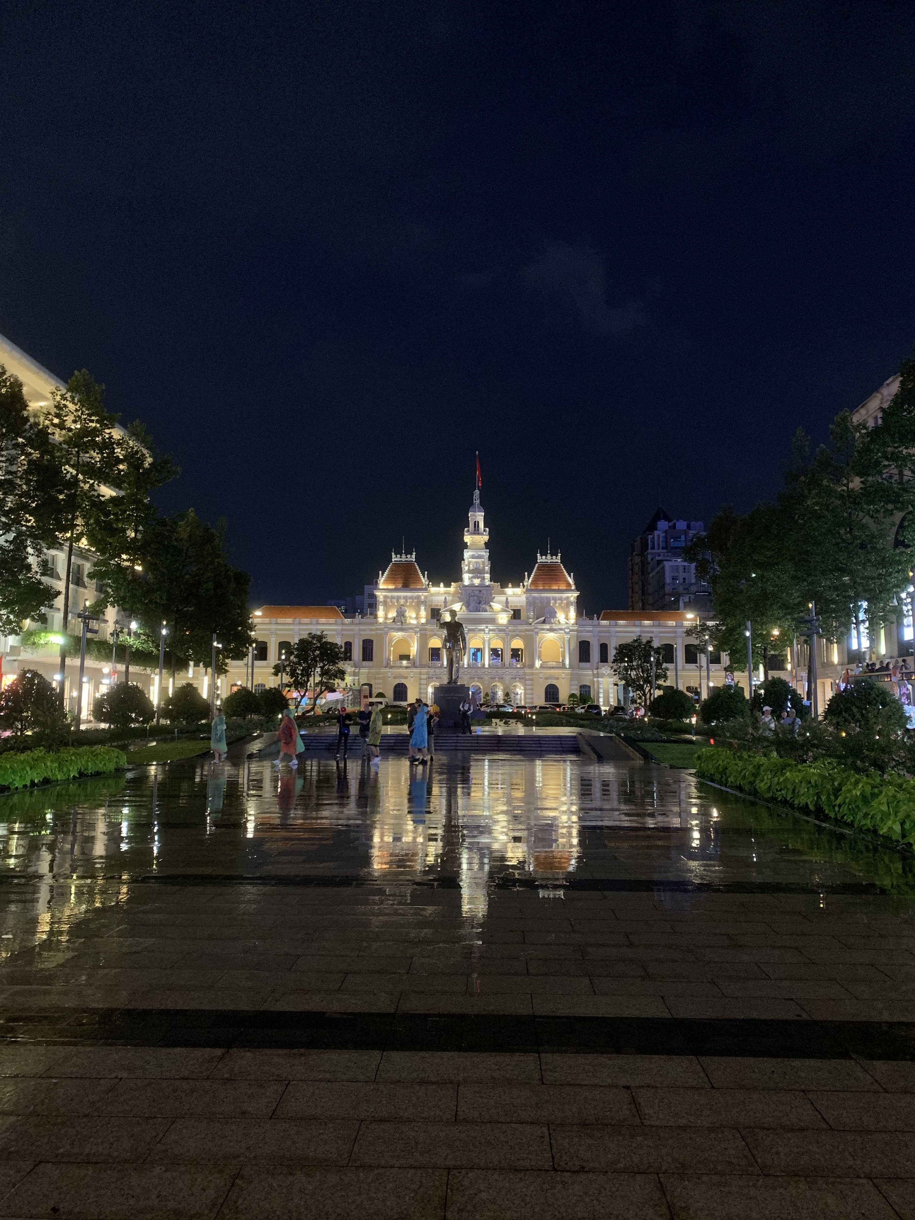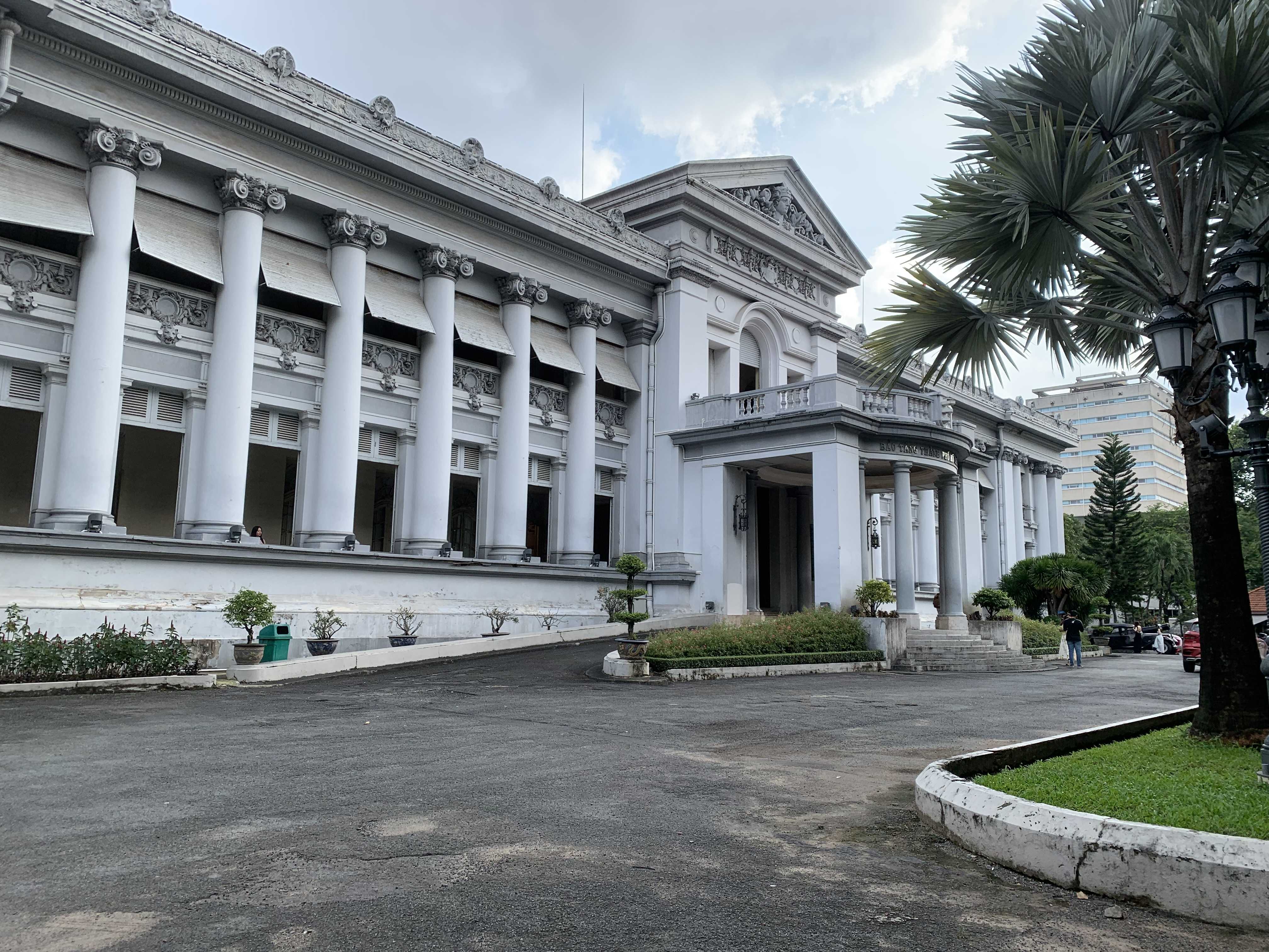 ホーチミン市人民委員会庁舎とホー・チミン像。2025/11/07金曜日の夜中からホーチミン市(旧サイゴン)に来ている11月なのに昼は30度を超えるので、もしも夏に来たらとんでもない気温かもしれない。北緯10°だから赤道から1000キロしか離れていない ボン・セン ホテルの朝食のフォー バインセオ46A というピンク色の教会(タンデオン教会)の横道入って200mのところにあるバインセオの超人気店。レタスとかシソとかミント、などの野菜に巻いたりパクチーを乗せたりして食べる。バインセオとは、、、知らなんだー。世の中にこんな美味いものがあったのか。。この店に ねこラン2つ星を進呈!!ブンとは麺、揚げ春巻きと肉みたいなのが載った麺、ブ・ティットゥ・ヌン・チャー・ヨー 100000ドンつけ麺みたいに甘酸っぱいタレをかけたり漬けたりして食べる。これも美味い! 地元の人や観光客でごった返している バインセオ46A 俺はこの店を忘れない!行くべし! この教会 12-14時は入れないので注意! ドンコイ通りのボン・セン ホテルに滞在。HISの一番スタンダードクラスの、ホテルを選べない勝手に決められてしまうクラスで、ここを指定された。けど便利で朝食も美味しく清潔。こんなんで充分だけと、今度来たらマジェスティック・ホテルがいいな。夜。Street Food Marketは、いわゆる屋台村みたいな建物で、街中よりも2割ぐらい価格は高いと言われているが、ここに来れば30屋台はあり、ベトナムの食べ物がほぼ何でも揃うといわれている 安いのでビールばっかり飲んでいる茄子のネギ油かけ。サルボウ貝の青ネギ油焼き?アーモンド乗ってるマテ貝と空芯菜の炒めものどれも凄まじく旨いのである!!魚のすり身が入ったバインミーを持ち帰る 前後するが、会社を14時で退社して羽田空港1715発のANA便でホー・チミンへ。 到着は2145だけど2時間の時差があるので乗ってる時間は6時間半、疲れ果てた。ボーイング787 シーフードドリアとチキン南蛮丼 全く美味しくない機内食