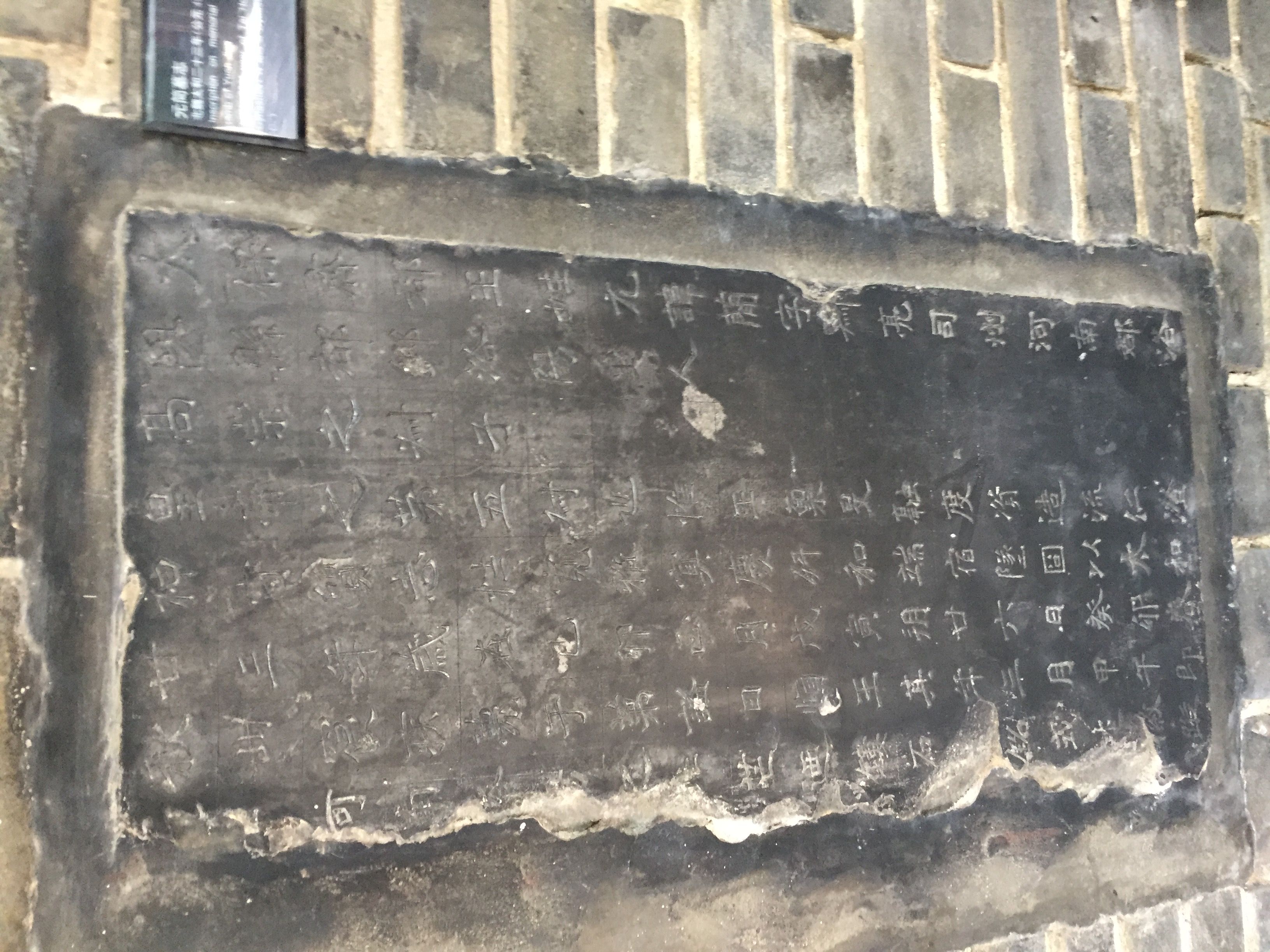 この墓誌は、左半分が欠けている。墓石が半分欠損して出土したようで、西安碑林にもこの碑は半分だけが壁に掲出されていた。(下の写真)