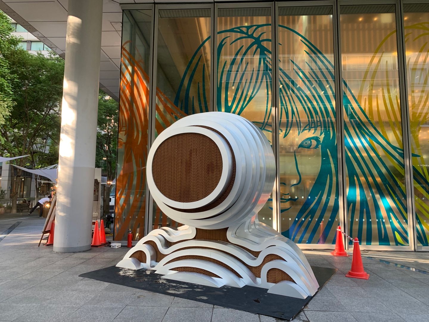水を柄杓でぶっかける、後ろに前向きにファンが回っていて、水の気化熱で涼しく感じる。という仕組みが。