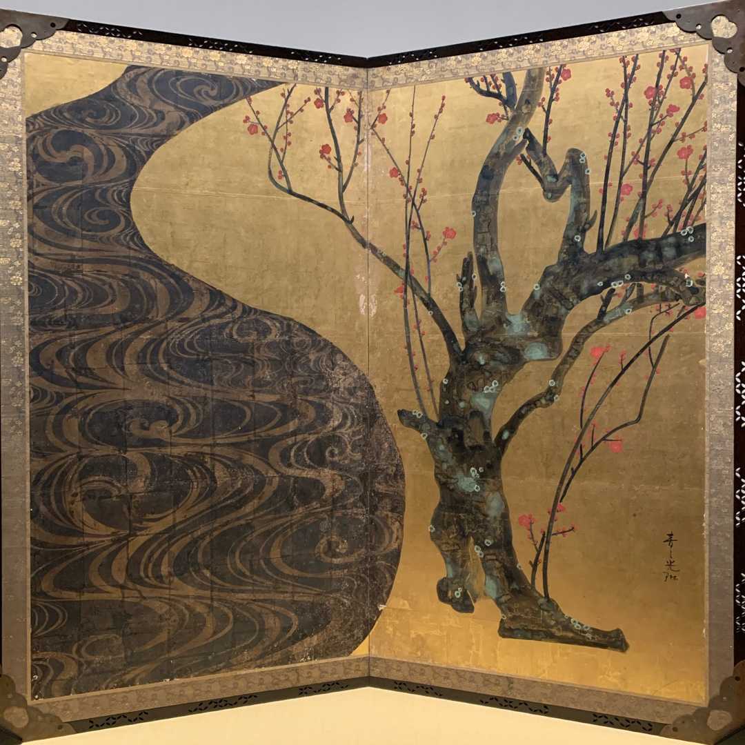 国宝、尾形光琳 紅白梅図屏風が短期特別展示中。
