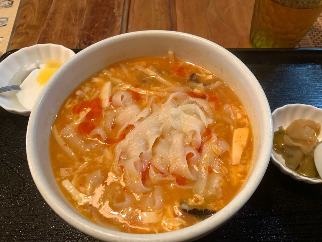 酸辣湯麺ではなく、酸辣刀削麺。まあまあかな。