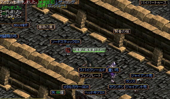 大晦日皆様どのようにお過ごしでしょうか?ついに今年も最後の日でございます。まあ最後の日くらい狩りをしたんですがまあこのようになりましたまあごみばっかww@は運比2手2つとか抵抗指ぐらい^^;今日でちょうどRS歴2年になりました。2年もやってて装備がしょぼい・・・てのはまあおいといてまあ今年振り返るとまあ去年の装備にくらべればまだ躍進したとはおもう。異常やら呪いやら低下といった基本的な抵抗系はそろったし異次元品も2つやっともてましたし。健康フローズンなんかは狩りでもつかってますが移動も稼げて回避もすこしはついてるから使いがっていいです。春ぐらいにやっと買えた飛虎、足はフルダメゴッドマザーで狩りやってるもんですから移動速度がそれなりにそろってることには結構満足してたりします。というか今の移動速度になれてしまって移動速度おとすとなんかやりにくかったりする^^;まあ心残りといえば狩りようのシフ武器がいまだにNボーディングGDX∞というしょぼい点とせっかく拾ったバターを異次元の彼方に捨てたことくらいでしょうか^^;;;いい加減レベル的に武器とかかえたいんですけどね。(努力はしたさ武器異次元やったさでも成功しなかったさ^^;;;)いまだにバターの喪失感にひたってます^^;;;;まあ消えたらしかたないと日記には書いたけどもうないと思うとやっぱりね・・・まあまた拾えたらいいな。来年はいい年になるといいんだけど。なんとなく悪い年になりそうですわ^^;;それでは皆様よいお年を!