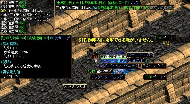 少し間あいちゃったね。大学始まってなかなかRSもできないから困ったわwまあ最近のGvを振り返っての一言なんですが武道になってれば安全なんて思っちゃダメw一人でつっこんでいって死んだからな~。正直仰け反るの発動って相手知識いないとあんまりうまいことしてくれないんだよね~切れた瞬間がいたすぎてこまる。死んだといってもそれ1回きりだったけどそれでも死んじゃいけんのが当たり前だからだめだよね~。仰け反るマスタしたほうがいいのかな?あと攻速が最近きになるとこ。正直見てて遅いしさw別に攻速装備ちゃんとしてないわけでもないんだけども。ものすごい速い払い蹴りとかしたいもんだ。装備も命中率補正無視の装備したいとおもってるんだけど健康フローズン売って健康チェンスク買うのもなんかフローズンがもったいないし。てか気に入ってるしさ後はセーフか命中率補正無視バイザーwぐらいなもんしかないんだけど。剣士がうらやましいわwデボーンあれば武器に命中率補正無視ついてるんだからいいよね~ダメとか申し分ないほど性能いいしさ。命中率補正無視バイザー昔露店でみたけどかっときゃよかったね。まあ最後にドロップ記録を↓まあUはごみばっかw2つ目のDXUソイルアンカーでたけどごみだしうれしくないw攻速翼は補正30%となかなかよかった。てか翼で良ベース良補正は初めてだね。あと変なところにおいてある青解除はポタのおつりで買ったロトの結果です。まあ売れるものがでてよかったけどよく言えば異次元がよかった^^;そろそろ大物ドロップしたいもんだね。まあなかなかできんだろけどでわノッシッシ