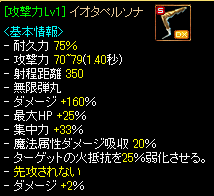 最近モリ2Fがいっぱいだとここいってます。人あんまいないしというかせまいから一人しか狩れんけど、ZINほどじゃないですがアイテムもそこそこおちます。デーモン系狩ってると昔名もなき塔B7でデーモン赤シフで狩ってるころおもいだします。当時の頃のSSあったんでのせてみました。この頃は異常ダメがまだあったのでボスランクのデーモンでも余裕で赤シフなれば結構な効率でたおせました。まあアイテムドロップはそこまでよくなかったんですけど。でもここで婚約1個ひろったかな。それくらいしか思い出ないやw最近いろんなDX武器Uでまわるようになりましたね。剣士やアチャとかそれで結構Gvばけれそうだしうらやましい・・・。んじゃシフは????まあGvのこと考えるだったらまずダブスロ考察からなんですけど今回はDF計算してみました。いつも使ってる計算サイトはまだDX武器UとかUM武器対応してないんで計算式だけどっかから調べてきたものでエクセルで計算したものを今回あげてみることにします。いちようステ条件は力1200スキル条件は55(武器によってスキル+あるのでそれも考慮)ダメ%数値条件は武器についてるものだけ考えるといったところです。考察に使ってる武器はボーディングアックスGDX(Nとダメ149%付き両方)、DXシフ武器U(武器の性能にダメがついてないもの、1.0~1.2秒武器はどっちかというとGv向きなので今回除外)にしました。参考程度に武器名だけじゃなく武器自体についてるダメ%数値、射程距離、装備レベル(DX武器シフUのみ)ものせておきます。・NボーディングアックスGDX(射程400) 1565.2~2919.7・ダメ149%ボーディングGDX(射程400) 2107.56~3931.41武器シフUDX↓1.4秒武器(射程350)・グライディングドミノ(ダメ150% レベル570) 2801.4~3126.2・イオタペルソナ(ダメ160% レベル566) 2932.3~3304↓1.8秒武器(射程350)・生命丸(ダメ170% レベル548 スキル+3) 3696~3850.14・ジェルスフィア(ダメ150% レベル524 スキル+1) 3654~3732.82↓1.6秒武器(射程400)・ブレイブアックス(ダメ200% レベル631) 3087~4674.6・ラボプロダクト(ダメ180% レベル687) 3074.4~4782.4・イチンイムソムニア(ダメ180% レベル693 スキル+3) 3202.5~5187.28・パイレーツハンター(ダメ235% レベル729) 3677.45~5772.2↓1.6秒武器(射程450)・トゥルーリベンジ(ダメ245% レベル732) 4488.75~4819.5ざっとこんな感じNボーディングGDXのダメ実際自分のステで計算してみたところ+50~+100ぐらい誤差でてたんでたぶんこの計算結果よりは実際のダメ数値はちょっと高いとおもいます。まあ平均ダメ考えたらもう1.4秒のU武器ですでにだめ149%ボーディングGDXと互角あるいは上かな?バッチなしで秘密最終レベル641で考えるとブレイブアックスが一番上。ラボプロダクト以降は装備バッチ75か100買わないと絶対つけれませんね^^;聞いた話によるとミズナ秘密卒業すると次の秘密からまた経験値うま~な秘密ばっからしいので2ヶ月後くらいには600台いっぱいいるとおもわれます。まああれですね自分でかいてみてなんだけどDF考察考えることがあんまり・・・Gvのダブスロだといろいろ考えんといけんことたくさんなんだけどDFは速度も気にせんでいいしダメしか考えなくていいし・・・。まあこれ参考にして狩り用の異次元武器つくるor買う、それかDX武器Uかってバッチなしのところまでレベルあげるかですかね。個人的にゃバッチはリアルマネー削られるからいたいOTL今度ダブスロ考察も書いてみまwあくまで俺の考えなので(未熟者の考え)