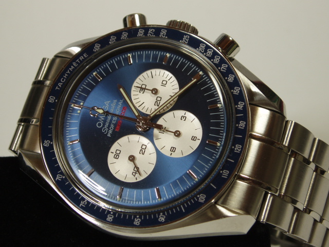 スピードマスター ファーストスペースウォーク (宇宙遊泳40周年記念モデル 3565.80) この時計、もう正規の新品はないと思っていたら、 昨日、時計探索をしていたら、新宿のマルイの時計店にあった。 世界限定2005本で、発売して4年も経っているので、 先日、この正規新品を買ったときは、 もう正規新品はないだろうと思っていたが、 まだ残っていたとは・・・。 いやはや2005本って、作りすぎな数字なのだと、再確認。 スピードマスターはよく限定品をリリースするが、 その数が多すぎて、全然希少価値がないんですよねえ。 でも、もう見つからないと思いますけどね。