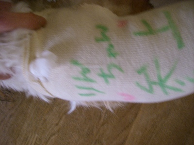 昨日の朝は寒かったので陽が差してからまる子とお散歩♪りんが居ないとなんだか淋しいねぇ・・病院にお迎えに行こうね♪散歩後すぐに娘の車で病院に行きました名前を呼ばれて診察室に入ると先生がりんを連れて来てくれました♪もぉ、尻尾ブンブン振って元気元気♪抱っこすると顔を舐めまくって大歓迎されました(*^。^*)「すごく良い子でしたよ。愛想のいい子ですね」と先生に褒めてもらい診察台の上でりんのサイズに合わせてサポーターで出来た洋服?を手作りしてくれました「可愛く作ってあげるからね~♪」「いや先生、まるでモモヒキみたいでダサいですよ^^;」せめてピンクだったらいいのに・・と先生と談笑しながらりんの洋服が出来ました♪体重は先月 目のアレルギーで診察してもらった時と同じ3.86キログラムちょうど良い体型ということで、この体重を維持するように気をつけなくちゃ^^普通に歩くし食欲も旺盛だし、手術直後とは思えない様子さすがに「ご飯くれ~~っ」のピョンピョンジャンプはしないけどスイッチが入るとまる子とガウガウし始めるので、それだけは阻止してま~す(~_~;)抱っこ散歩ももうちょっと我慢してねまる子も午前のお散歩だけで我慢してもらっているけど来週抜糸したら、元気にお散歩しようね♪クンクン・・りんちゃん臭いよ byまる子りんちゃん、病院から帰ってきたらなぜかやたらと臭いんです^^;早くお風呂に入れたい~~っ(苦笑)