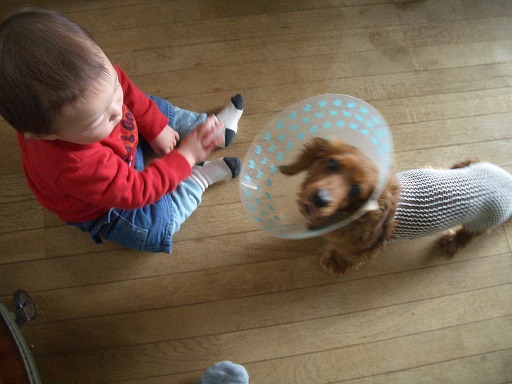 慶汰は、昨日よりいつもの慶汰に戻りました~とっても、かわゆいいつもの慶汰です!!もう、戻らなかったらどうしようかと・・・本気で悩みつつお世話・・というか、言いなりになっておりましたが・・少々、行き過ぎたわがままも言ってますが・・・前のように無視していれば、諦めるといういい子ぶりを発揮しております!もう安心!って、わけで今日は私の友達の家に遊びに行ってました~この友達は、もうすぐ5歳になる子と2歳半の男の子がいるお母さんですが・・男の子2人とはいえ、かなりおとなしい子なので・・今日は慶汰は泣かされることもなく、たのし~く遊んでおりました!というか・・3人が3様に遊んでいて・・ほとんど混じることもなく・・おもちゃの取り合いもせず・・・友達とものすご~くゆっくり話をしておりました!というか・・この3人・・仲がいいのか?悪いのか??と、笑い倒して帰ってきました。今日は、珍しく電車で遊びに行っていたのですが、帰りの電車というか・・友達の家の最寄の駅についた瞬間慶汰は、寝ていました!んで、降りる駅に着いた瞬間起きました!なんていい子!快速電車に乗っていたのですが、困ることもぐずることもなくスムーズに帰ってきましたよ~というか、行く時も30分くらい乗っていたのですが・・1度もぐずらず・・普通に乗っていたので、各駅について扉が開くのをじぃ~っと見てました。後は、同じ車両にいる人のウォッチング・・じろじろ~っと見て、時々笑いかけてくれる人に愛想を振りまいてました。で、飽きたら窓の外の景色を見てました。う~ん。いい子!これなら電車でのお出かけも出来るなぁ~とはいえ、平日の混んでいない時間帯なので、のんびり出来ますからね。帰りも当然ラッシュになる前に帰ってきました。んで、平和に帰ってきたら、主人から「体調が悪いから、明日休む・・」とのメール。なんだと!と思い、駅まで迎えに行ってあげて、ご飯は?と聞いたら、食べずにそのまま寝るというし!どんなに体調が悪くてもほとんど食欲の落ちないうちの主人!こりゃ、大事だ!と思って、そのまま寝かせてあげました。ただ・・今日は1日お留守番をしていて、元気が有り余っているお嬢様が我が家にはででんとおりまして・・この姫の散歩に行かないと、暴れることは必至!というわけで、気の毒ですが・・9時頃に起きてもらって、その間に散歩に行ってきました。というか、朝主人が乗っていった自転車の回収をしてきました!で、慶汰をお風呂に入れて、主人はまた寝てしまいました~今は、胃腸にくる風邪が流行っているそうですね。慶汰が落ち着いたと思ったら、今度は主人。なんなんだ・・そして、一番か弱いはずの私がなぜにこんなに元気なんだ・・・・??う~む・・・なぞ?とはいえ、私も葛根湯を飲んで寝ておこうと思っています!はぁ~やれやれ。明日は兄の引越です!当然、手伝いに行くのですが・・・そういえば、母も今日主人と同じ症状でぶっ倒れているらしい・・・そして、先週は妹が同じ症状で倒れていたらしい・・普段倒れない人がかかるのかしら?もしや今元気なのは私だけ???みなさまもどうかお気をつけください!どうやら、か弱い人はかかならいようですわぁ~おまけ・・・実家のネネは、日曜に無事退院してきました。なんで、日曜まで伸ばしてもらったかというと、土曜に連れて帰っても日曜の朝9時にまた連れてきて診察といわれたそうです。だったら・・・と、もう1晩入院させたそうです。つうか・・・・かなり吠えまくっていて、術後の次の日。つまり、土曜の朝から餌もがっついて食べていて、先生いわく・・・ありえないくらい元気だそうです!さらに、今入院しているわんこが、ネネのほかに2匹。すごく鳴くわんこがいるらしく・・・これにネネが加わると3匹で、いい加減にしろ~と叫びたくなるくらい獣舎がうるさくなるらしく・・・引き取って欲しかったそうですわ。あははははは・・・・・ネネの辞書におとなしいという文字は無いそうです!↑は日曜にみんなで、お見舞いに行った時のです。慶汰はカラーに興味津々!まだ、おなかに管を入れているので、ネットもされています!こうやって慶汰と並ぶと、ネネの小ささがわかりますね。とはいえ、かなり元気でした!↑こっちは、ナナです。ナナも心配だった・・・ということもなく、ネネがいなくて静かに、そして快適に過ごしていたそうです。狭いダンボールベッドに2匹で入りますからね・・・のびのび寝ていてらしい・・んで・・・『なんで、あたちだけ入れないんだわん!!』と、すねておりました。チコが入ると、ネネをいじめますからね~一緒にお見舞いに行きましたが、チコは家には入れませんでした!かなり、嫌みったらしく家の中をのぞいているなぁ~と思ったら、今度は背中で無言の圧力をかけておりました。まぁ・・無駄なんですけどね!お知らせ柴犬☆伊吹の日々是精進の管理人 ももんがさん と、柴犬あきとの日記の管理人 まーく40さん の主催で、淡路島