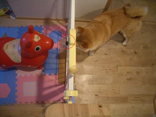 今日も、朝からぐじぐじ慶汰様です。夜中に何度も起こされ・・起きた瞬間から、『まんまぁ~まんまぁ~』と泣き叫び・・あげたら、あげたでまたぐじぐじ・・・あぁ、うるさい!と、思っていたら、体操教室のお友達から電話があって、しまじろうのビデオを貸してあげようか?とのこと。行ってきましたよ!大雨の中!!家にいると、ぐずるぐずる・・・で、どうしようないので・・慶汰も一緒に行ってきました!で、お友達の家ですご~く楽しそうに遊んでいました。まぁ・・・このお友達、女の子なのですがすぐに手が出る子なので・・何回も泣かされてましたけどねぇ~最近のぐじぐじ慶汰で、泣かされていた私。もう、止める気もない・・叩かれて泣かされなさい~と、放置してました。それに懲りたのか・・途中から、すごくいい子になって遊んでましたわ。で、このお友達が寝てしまってからは、よその家だというのに・・・我が家のようにきゃっきゃ、きゃっきゃ・・・楽しそうに遊んでいました!途中までは・・・実は、この家のリビングには1段高くなった和室があるんです。その和室と窓の間に、15~20cmくらいの隙間があったのですが・・慶汰はそこと反対側で遊んでいたので、大丈夫か・・と思っていたら、ふと見たら・・窓側に行って立とうとしている!いつものように、窓につかまってつたい歩きをしようとしていたらしいのですが・・あぁ~!!!と、思った時には、見事にその隙間に落ちました!慌てて引っ張りだしたら、どうやってはまったの?ってくらい、頭のサイズぴったり!強引に引き出さないと出てこない状態だったので、ますます大泣きの慶汰でした!幸い、隙間がぎりぎりだったのでどこにも打つことなく、ぴったりと落ち込んだようでしたので、怪我は無かったのですが・・油断禁物!肝に銘じておきます!で、しまじろうのビデオと一緒に、なぜか『Rody』も借りてきました!↑Rody!誰もが一度は目にしたことがあるはずの、はずむ馬のおもちゃです!実は、私はこれが大好きで・・・・買おうと何度も思っていたのですが、結構なお値段するんです!なんか、買う気になれなくて・・てか、買って慶汰が遊ばなかったら・・と思うと、踏み切れない!で、このお友達に家にあって、買おうと思っているんだけど・・と言っていたら、ママの妹さんとお兄さんの両方の家にあって2つもらったから、1つ貸してあげるよ~とのこと!いいの~??と、喜んで借りてきました!というか・・・やっぱり、買おうかなぁ~と思っています。だって・・・↑のように。柵から鼻が出るほどお気に入りなんですもの~って・・・誰のや!とはいえ・・私が上に乗ってぴょんこぴょんこ跳ねていると、気になってしょうがないらしく・・・物色してました・・・そりゃあ~もう~念入りに!!チコさん・・・あなたは乗れませんよ!昨日、手術したネネですが。今日、退院していいよ~との連絡があったのですが・・・母が行って、お願いして・・・明日退院にしてもらいました。今日は、雨がかなり強かったし、1日様子をみていないとダメでしたからね・・まだ、祖父の調子がいまいちらしいので・・・無理やり、もう1泊してもらいます。とはいえ、かなり元気だったようです。よかったです!おまけ・・・Rodyの後姿・・・誰かに似ている・・・・・・・・・・・・・・・・・・・・・・・・・・・・・・・・・誰かに・・・お知らせ柴犬☆伊吹の日々是精進の管理人 ももんがさん と、柴犬あきとの日記の管理人 まーく40さん の主催で、淡路島でオフ会があります。日にち:4月30日開催場所:淡路島の大浜海岸です。もちろん、チコ一家は参加するつもりです。もし、参加出来る~とか、参加したい~という方がいましたら、一緒に遊びましょう~参加希望の方は、ももんがさんか、まーく40さんへ参加します!とコメントしてください。孤独を愛する子がいても大丈夫ならしく、海岸はひろ~く使えるそうです。楽しいイベントもいろいろ考えてくださっているようなので、GWにまだ予定が無いかた~他の子と仲良く出来ないかも・・と心配しなくてもよさそうです。他の飼い主さんとの交流を深めるいい機会では?と思います。アトムくんや麦ちゃんも参加する予定だそうです。あと、柴犬が多いそうですが、もちろん他の犬種もOKだそうです!