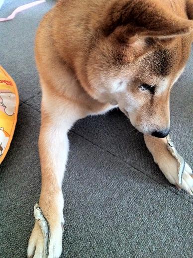 もうすぐ4歳になるゴン。最近、やっと、伏せを覚えました。お預けは、ずっと前からそこそこ出来ていたんです。初めて合わせ技、伏せ&お預けです。両方の足に煮干しを乗せるのは意地悪だったかしら。シヴァ猫がOKの合図をするまで、ちゃんと待ってましたよ。ゴン、賢くなったね。もう、4歳だからね。そろそろ嬉ションを卒業して欲しいなぁ。年に1回くらい失敗しちゃうんです。お誕生日には大好きなサンマを焼いてあげるからね。