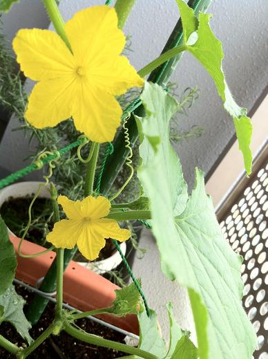 今のところ、順調な今年のベランダ菜園。やっときゅうりの花が咲きました。雄花しか咲いてないから、実はならないんですけどね。でも、キレイに咲いたので嬉しいです。雄花と雌花がタイミング良く、一緒に咲いてくれるといいんですけど。完全に運任せです。ミニトマトは一足先に花を咲かせています。ちゃんと受粉したみたいで、小さい実が出来てました。収穫はずっと先になると思いますが楽しみです。