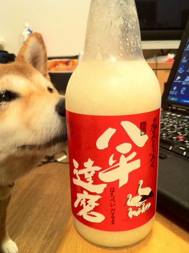 先日、実家に行った時、地元のお酒を買って帰りました。ひやおろし、山廃仕込み、ドブロクの3種類です。このドブロク、フタに小さな穴が開いてました。発酵が進んでいるので、密閉してしまうと爆発しちゃうんですね。単に白濁しているだけのお酒は飲んだ事がありますが。元気に発酵中のお酒を飲むのは初めて。甘い香りがするので、ゴンが気になって仕方がありません。ワンコは飲んじゃいけないのよ。ほんのり甘くて、微妙に発泡してました。これは飲みやすい。一気に飲んでしまいました。アルコール度数は10%だけど、次の日にちょっとだけ残ってました。山廃仕込みはお正月にシヴァ夫と飲もうかなぁ。えっ、ひやおろし?もう飲んじゃいました。