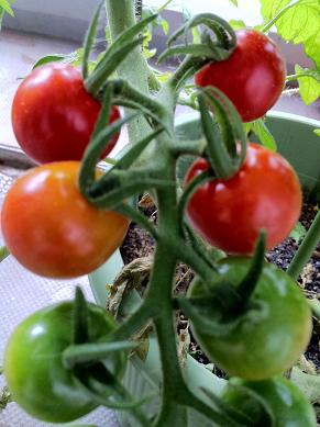 ベランダのプチトマト、やっと赤く色付いてきました。今年は1房に鈴なりになるタイプの苗を購入しました。1房で12~16個実が付いてます。1つ試食しましたが、過去最高の出来栄え。しっかりとトマトの味がしました。土や肥料の配合が良かったのでしょうか?しばらくの間、プチトマトは自家製を楽しめそうです。ゴンのご飯にもプチトマトを入れてあげるよ。まん丸のままのプチトマトは食べないゴン。でも、カットしてあげると美味しそうに食べてくれます。