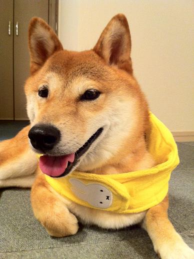 サッカー観戦で寝不足気味のシヴァ猫です。ロンドンオリンピックのサッカー男子予選観てました。日本がスペインに勝っちゃいましたよ、びっくりです。まぁ、調子に乗ったらいかんですよ。次のモロッコ戦では気を引き締めて頑張って欲しい物です。解説はやっぱり松木氏がいいですね。昨夜は物足りなかったです。ここから本題ですが、連日、暑い大阪で~す。ゴンの暑さ対策がなかなかうまく行きません。散歩の時に暑いだろうと思って、保冷剤入りのタオルを買いました。でも、ゴンにとってはただのおもちゃ。タオルを見ると引っ張り合い子をしてもらえると思うみたいです。でも、なんとか保冷タオルを装着してお散歩に行きましたが。タオルが気になってちゃんと歩けませんでした。保冷タオルがシヴァ猫専用になりかけてた有る日・・・。試しに、散歩から戻って暑さでぐったりしている時に保冷タオルを装着してみました。まんざらでもないみたいです。画像の黄色いのが保冷タオルです。ミッフィーが可愛いでしょ。お散歩の時にも装着できるようになるといいなぁ。