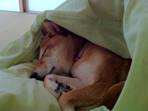 この週末は近所でお祭りがありました。チビッコ達がだんじりを引いて、とても賑やかでした。ゴンはこのお祭りが大の苦手です。だんじり・・・怖い、祭囃子・・・怖い。チビッコの集団は超怖い・・・。天気が良かったのでお散歩に連れて行きましたが。だんじりを発見して、ビビってしまいました。尻尾を巻いて自宅に逃げ帰りました。帰宅して不貞寝でございます。自宅でも祭囃子が聞こえると、耳をヒクヒクさせて警戒モードに入ってました。ワンコと一緒に祭りを見ているご近所さんがうらやましかったです。いつかゴンと一緒にお祭りを見に行きたいけど、かなわぬ夢なんでしょうね。