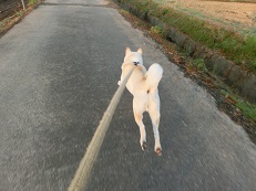 日中のナツマリ。今日は寒かったー。こちらはそんな寒空の下、夫婦仲良く番犬するナツマリ。いつもご苦労さん、ありがとね。今日は早めに帰宅して夕方の散歩へ出発です。自転車運動でコースを進んでいきます。途中、ジュンちゃんに会いました。大喜びでこちらへ駆け寄って来てくれました。(嬉)元気印のジュンちゃん。先のジュンちゃんパパさんの心配も杞憂みたいだったようだね。白黒コンビとジュンちゃんの姿を見つけて散歩中のご近所さんがやって来ました。みんなで仲良く井戸端会議してるのかな?「オヤジ、俺とジュンちゃんはオトコだよ」ってナツのツッコミが入りそうです。(笑)ジュンちゃんパパさん達としばしの世間話の後、トラの家へやって来ました。今日はナツトラ親子でロードワークへ出かけてみました。マリ譲りのハンパない気の強さを見せるトラ。「ぜーったい白親父には負けねー」って感じでガンガン引き運動でのんびり自転車に跨る私を先導していきます。序盤は火花を散らしながら並走していた2匹でしたが、コース後半あたりからトラへ度々視線を送りながら、何処か嬉し気に駆け抜けていくナツの姿が見られました。最終的には血気盛んな息子にも優しさを見せてくれるナツ。トラ坊にはそんな親父の背中はどう映っているのかな?トラに別れを告げてナツマリと家へと向かう道すがら、久々にココちゃんに会いました。人懐っこくてトラとも仲良しのココちゃん。外犬のココちゃんは被毛も冬支度が進んでいるようです。日本犬として生まれてきたワンコ達は1年の中で一番美しく輝く季節をこれから迎えます。今日は風も冷たく、体感的にも寒さを感じる一日となりました。明日も今日以上に寒い一日となりそうです。しっかり防寒してナツマリとの朝の散歩に臨みたいと思います。ここ数日、寒さを運んできた北風を始め、世の中にはいろんな風が吹いているようですね。いろんなものを届けてくれる風。今回の風はどんなものを運んでくるのかな・・・