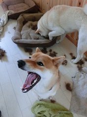 とある平日の昼下がり。お婆ちゃん子のスズがしきりにマリに遊びの催促をしているようです。しつけに厳しいマリもこんなに甘える孫のスズに怒る様子もなく、のんびりした時間が流れていきます。スズもすっかり成長したってことでしょうね。「婆ちゃん、遊んでってば~」「もうちょっとしたらね」「つまんない~」「ん?婆ちゃん何か食べてる!」「何でもないよ~💛」可愛い孫と女同士、水入らずの時間。マリはスズにどんなことを伝えているんでしょうね?明日は鹿児島展。会場はかごしま健康の森公園ファミリー広場(鹿児島市犬迫町825)です。今回は犬友の皆さんの応援もかねてのんびり気分で見学に行ってみようと思っています。天気も何とかもちこたえてくれるといいんですが・・・