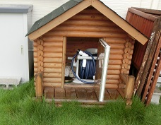 この庭で今夏も活躍してくれた散水用のホースや蚊取り線香などなど、