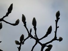 トラが出かけた後、ふと見上げてみた庭のモクレンの木。