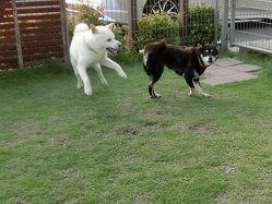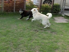 所要先から戻ると、入口へ一目散に駆け寄ってきてくれる白黒コンビ。