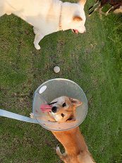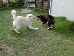 夕方の散歩の時間がやって来て、庭へと顔を出してみると、ナツはボールをセット