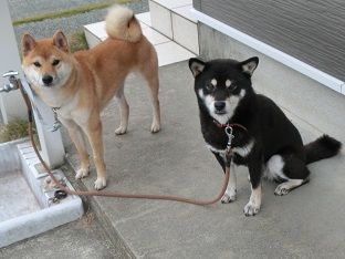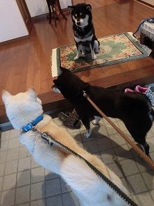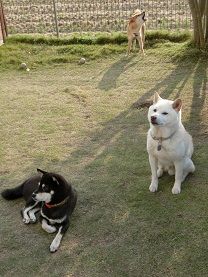 ナツマリ。白黒コンビにとっては嬉しい楽しい朝の散歩になったみたいです。