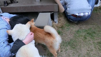 庭遊びにちょっぴり疲れてしまったのか?はたまた生まれ育った場所に仲良く遊んだライトも