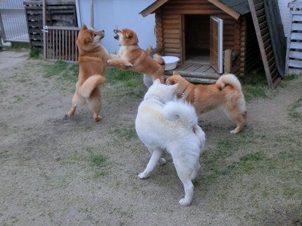 程なくすると、いとこ3匹での庭遊びが始まりました。