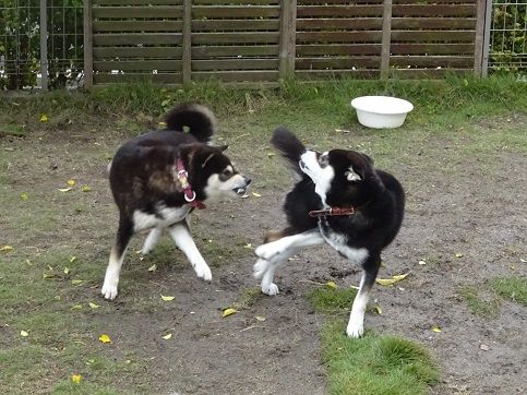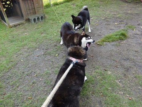 予め大事を取って2匹にリードを装着しておいたため、幸い大事には至らずに事態を鎮める