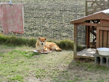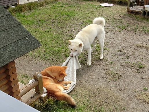 タオル等を庭へ引っ張り下ろしてまったりする姿を見せることが多くなってきました。(困)