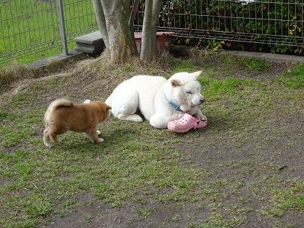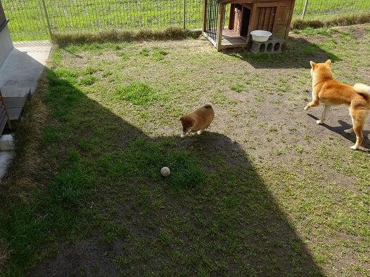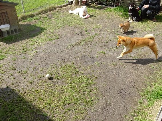 しばらくしたところで、一緒にボールを追うも、ナナにボールを譲ってあげる