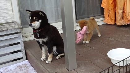 ナツ爺の話も終わらないうちに近くにあったリードを口にして引っ張ってみたり、