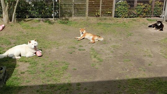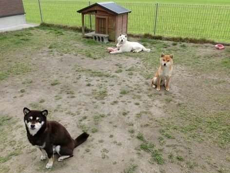 忘れ物を手にして庭に目を遣ると3匹のフォーメーションが変わりセンターには結。