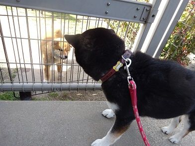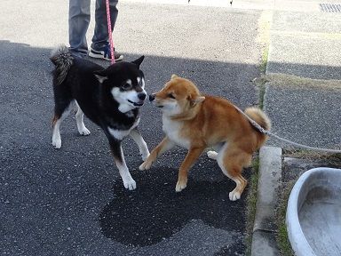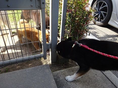 婆ちゃんみたいな顔した犬が来てるよ!!」って感じで楽し気にワンワン騒ぎ出す
