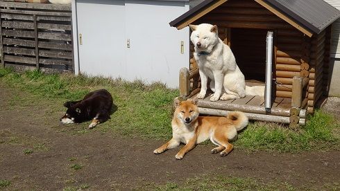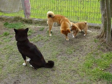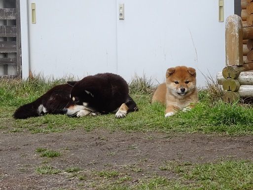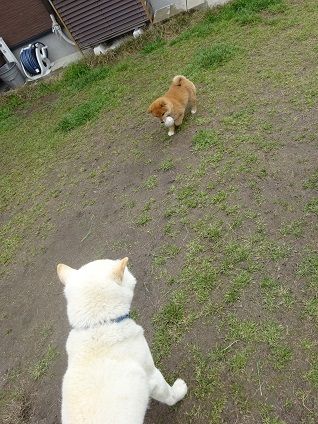 ボール遊びがひと段落してマリ婆の横で待機するナナを一枚。