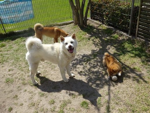 お爺の懐に潜り込むようにしてボールを狙うナナにナツも大苦戦を強いられています。(笑)