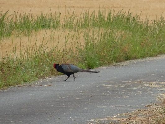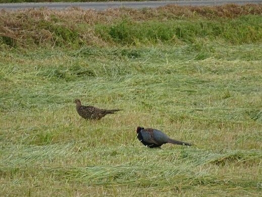 所用からの帰途、自宅近くでキジのつがいを目にすることができました。