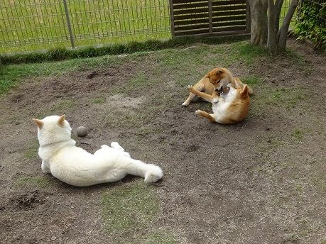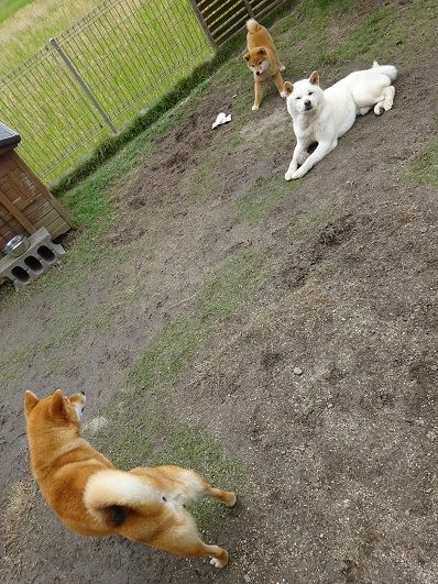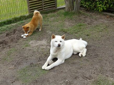 部屋で昼寝をしていた結を庭へと出してみることにしてみました。