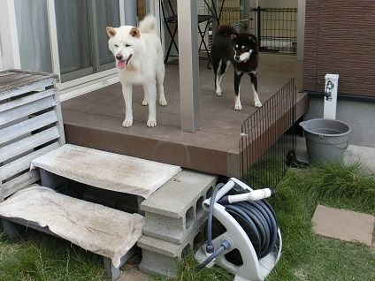 サポートにマリ婆ちゃんも庭へと降りて来ます。