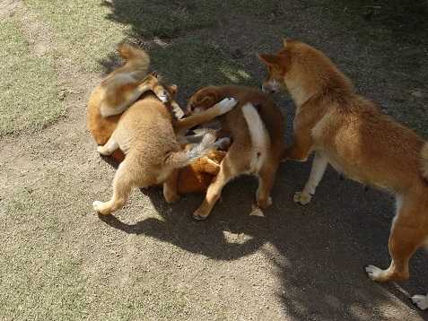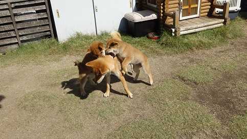 プロレスごっこを仕掛けてきた3匹の勢いに呑み込まれる様にもみくちゃ状態になりな