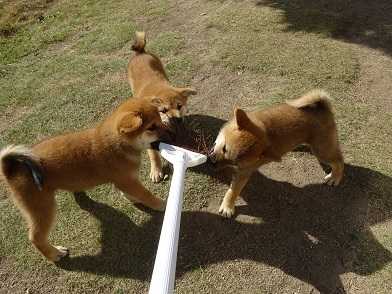 リッキーも放しちゃダメだぞ!!」って感じで長男のリュウがブリブリやりながら2匹を