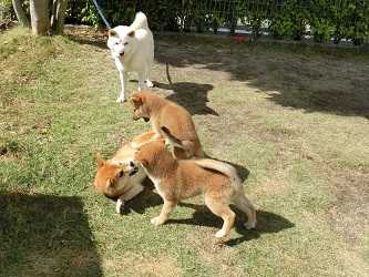 しばらくするとリッキーが2匹の兄を先導する様に今度はナナに激しいプロレスごっこ