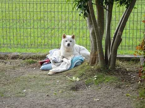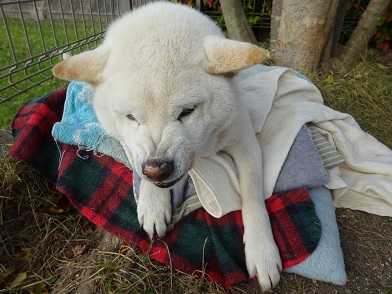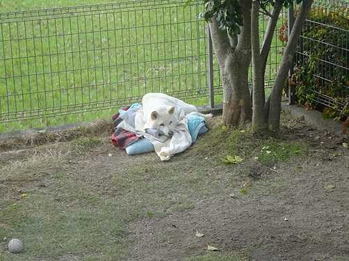 この後、程なくして庭の様子を眺めていると、面々と一緒に庭木の下でグーグー寝息を